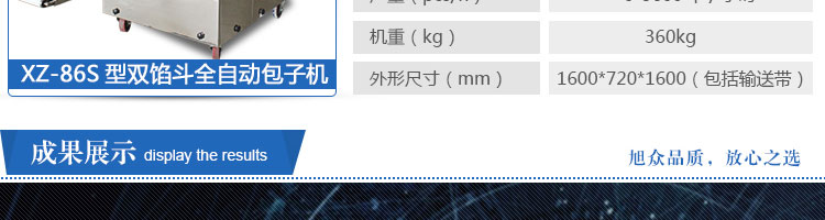 XZ-86S型雙餡斗全自動包子機,可生產(chǎn)各種肉包、肉菜包、菜包、小籠包、湯包、水晶包、圓饅頭、奶黃包、豆沙包、叉燒包、南瓜餅等幾十種包餡制品。適用于賓館、飯店、學校、機關企業(yè)食堂、饅頭或包子加工廠、早餐工程店及速凍食品廠等單位??蓾M足不同客戶群體。免費提供工藝技術。免費上門培訓指導安裝。