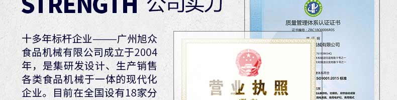 廣州旭眾食品機(jī)械有限公司是一家集科研開發(fā),生產(chǎn)設(shè)計(jì),營(yíng)銷服務(wù)為一體的現(xiàn)代化生產(chǎn)企業(yè)。現(xiàn)代化生產(chǎn)車間,精湛制造技術(shù),所產(chǎn)機(jī)械歷經(jīng)市場(chǎng)重重考驗(yàn),不斷贏得海內(nèi)外客戶的贊譽(yù)。