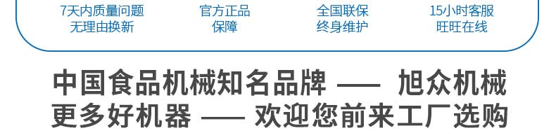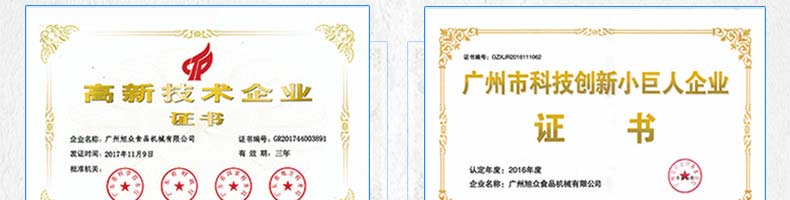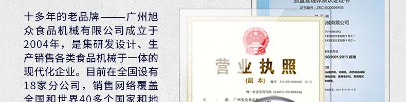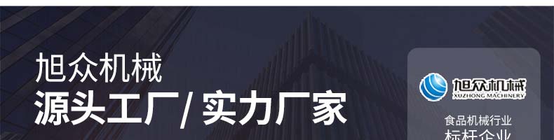 廣州旭眾食品機(jī)械有限公司是一家集科研開發(fā),生產(chǎn)設(shè)計(jì),營銷服務(wù)為一體的現(xiàn)代化生產(chǎn)企業(yè)?,F(xiàn)代化生產(chǎn)車間,精湛制造技術(shù),所產(chǎn)機(jī)械歷經(jīng)市場重重考驗(yàn),不斷贏得海內(nèi)外客戶的贊譽(yù)。