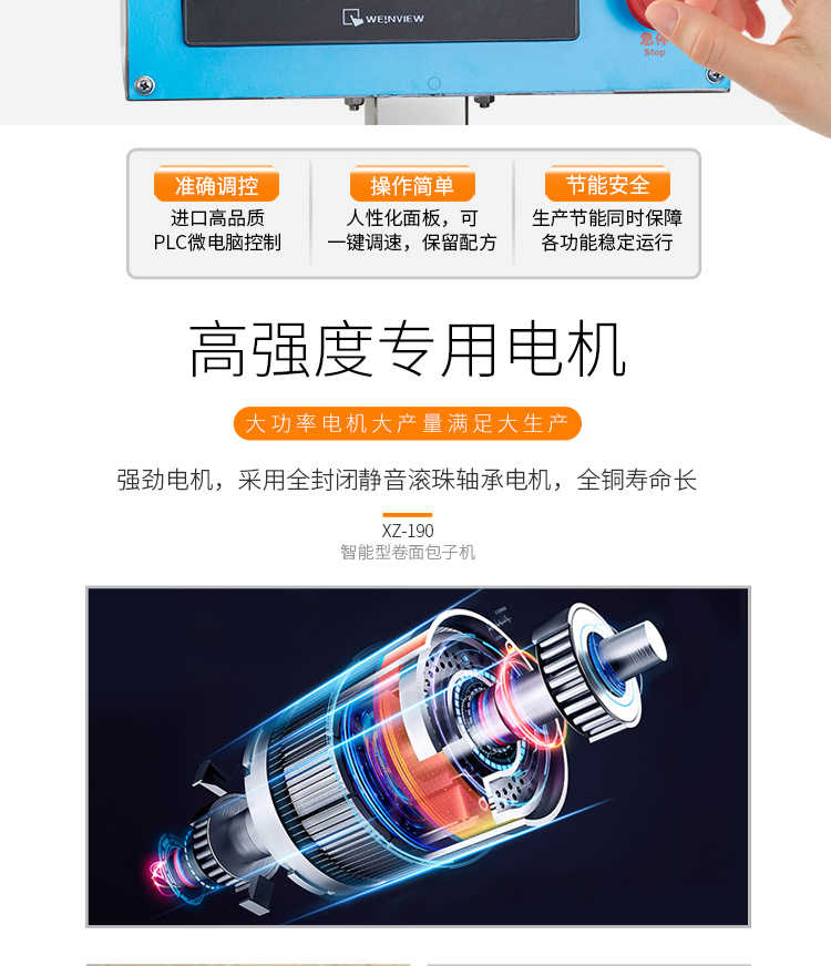 XZ-190智能型卷面式包子機,科技和工藝出乎想象不傷面筋,不斷面筋,薄厚調(diào)節(jié)自如可直接調(diào)節(jié)面皮的薄厚,所出產(chǎn)品外形大小統(tǒng)一,遠比手工制作美觀!
