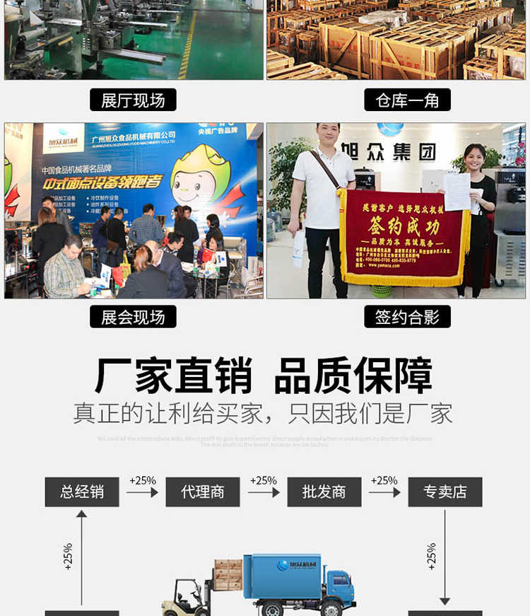 廣州旭眾食品機械有限公司是一家集科研開發(fā),生產(chǎn)設計,營銷服務為一體的現(xiàn)代化生產(chǎn)企業(yè)。現(xiàn)代化生產(chǎn)車間,精湛制造技術,所產(chǎn)機械歷經(jīng)市場重重考驗,不斷贏得海內(nèi)外客戶的贊譽。
