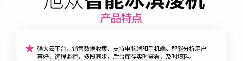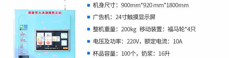 無人售貨冰淇淋機(jī), 人工成本越來越高,無人店、無人售賣機(jī)必將是一個趨勢。簡單而又重復(fù)的勞動(售賣)必將被智能無人替代。無人售貨自助冰淇淋機(jī)支持多種支付方式,支持遠(yuǎn)程監(jiān)管功能,支持預(yù)冷保鮮,支持多種口味混合,自動清洗少料報(bào)警。無需人工、場地?zé)o限制。