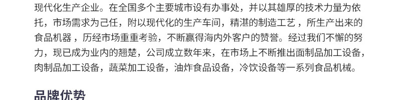 廣州旭眾食品機(jī)械有限公司是一家集科研開發(fā),生產(chǎn)設(shè)計,營銷服務(wù)為一體的現(xiàn)代化生產(chǎn)企業(yè)。現(xiàn)代化生產(chǎn)車間,精湛制造技術(shù),所產(chǎn)機(jī)械歷經(jīng)市場重重考驗(yàn),不斷贏得海內(nèi)外客戶的贊譽(yù)。