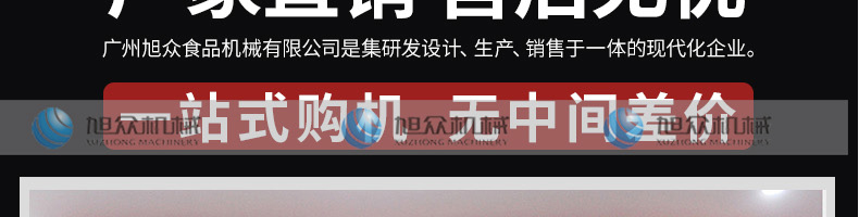 廣州旭眾食品機械有限公司是一家集科研開發(fā),生產(chǎn)設計,營銷服務為一體的現(xiàn)代化生產(chǎn)企業(yè)?,F(xiàn)代化生產(chǎn)車間,精湛制造技術(shù),所產(chǎn)機械歷經(jīng)市場重重考驗,不斷贏得海內(nèi)外客戶的贊譽。
