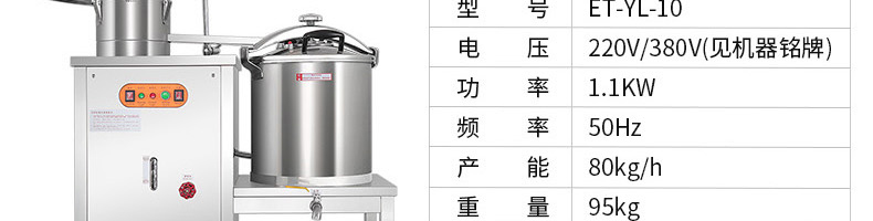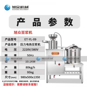 ET-YL-09壓力電熱豆?jié){機,多功能商用豆?jié){機,細(xì)、香、濃。我們珍惜每一顆大豆,讓每顆大豆進發(fā)營養(yǎng)價值。旭眾豆?jié){機做您的招牌豆?jié){打磨細(xì)膩、口感香濃、回味無窮。