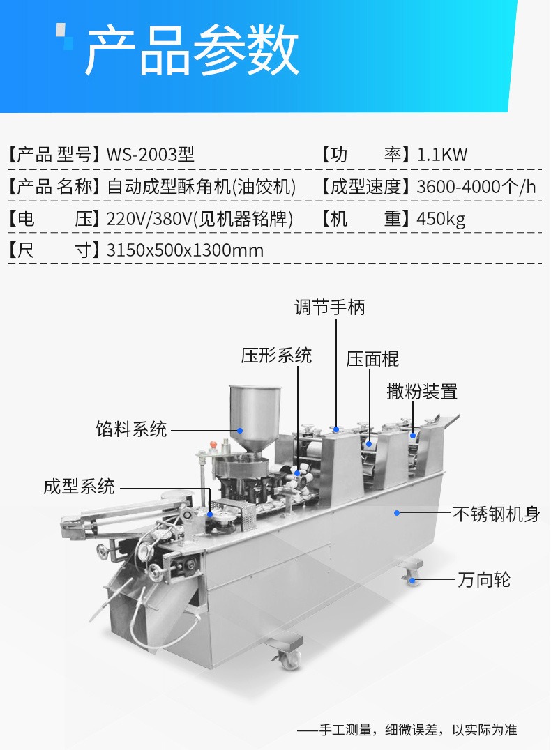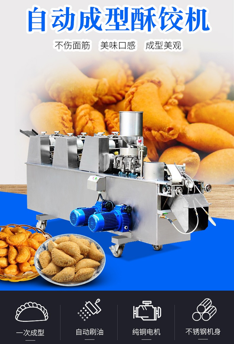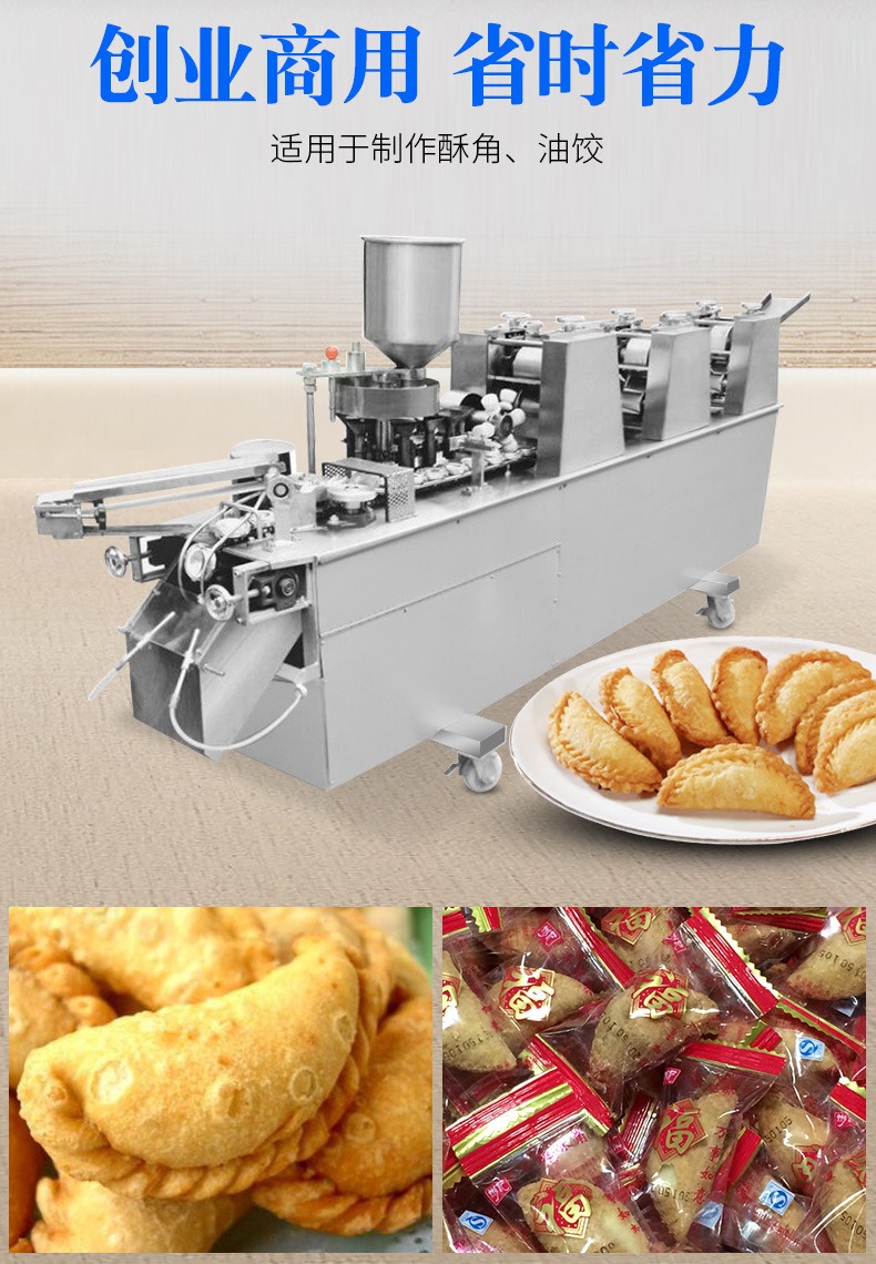 自動(dòng)成型油餃機(jī),創(chuàng)業(yè)商用、省時(shí)省力。適用于制作酥角、油餃。3000-4000每小時(shí)大產(chǎn)量。省力快速,做酥角、油餃的神器。自動(dòng)撒粉 不粘機(jī)器。面粉均勻漏下,面皮不粘黏機(jī)器。