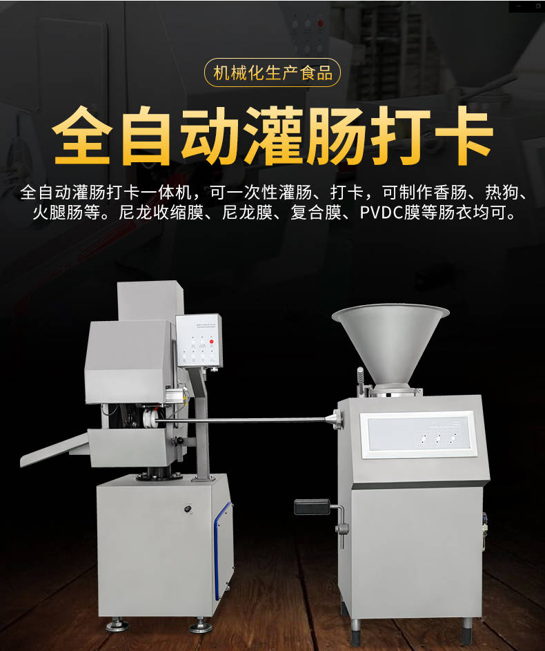 XZ-I型自動定量灌腸機,使用優(yōu)質不銹鋼制造,符合食品機械的要求,只需1人操作,特別適合中小型肉食加工廠使用,以各種畜禽類肉糜為原料的香腸、火腿腸、熱狗等天然腸衣、蛋白腸衣、煙熏腸衣等制品,可以灌制定重量單腸,也可連續(xù)灌制長腸。