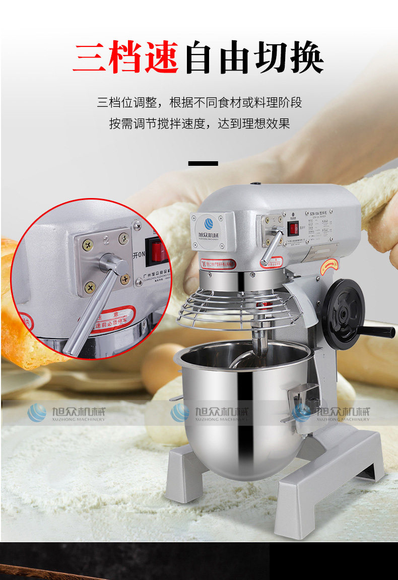 SZM-10A攪拌機(jī),三檔速自由切換。三檔位調(diào)整,根據(jù)不同食材或料理階段按需調(diào)節(jié)攪拌速度,達(dá)到理想效果。強(qiáng)勁動(dòng)力,源于強(qiáng)芯配置純銅電機(jī),滿(mǎn)足高強(qiáng)度需求,堅(jiān)固耐用大功率電機(jī),澎湃動(dòng)力,和面有力更均勻。