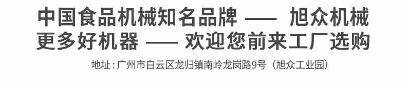 廣州旭眾食品機(jī)械有限公司是一家集科研開發(fā),生產(chǎn)設(shè)計(jì),營(yíng)銷服務(wù)為一體的現(xiàn)代化生產(chǎn)企業(yè)?,F(xiàn)代化生產(chǎn)車間,精湛制造技術(shù),所產(chǎn)機(jī)械歷經(jīng)市場(chǎng)重重考驗(yàn),不斷贏得海內(nèi)外客戶的贊譽(yù)。
