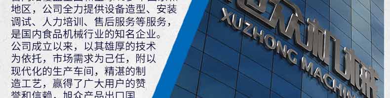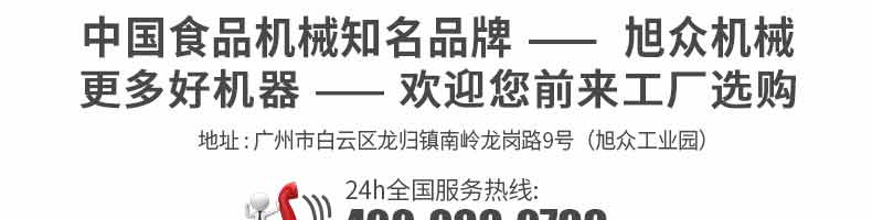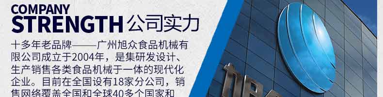 廣州旭眾食品機(jī)械有限公司是一家集科研開發(fā),生產(chǎn)設(shè)計(jì),營(yíng)銷服務(wù)為一體的現(xiàn)代化生產(chǎn)企業(yè)?,F(xiàn)代化生產(chǎn)車間,精湛制造技術(shù),所產(chǎn)機(jī)械歷經(jīng)市場(chǎng)重重考驗(yàn),不斷贏得海內(nèi)外客戶的贊譽(yù)。