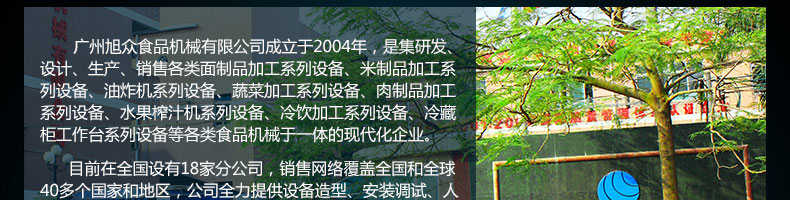 廣州旭眾食品機(jī)械有限公司是一家集科研開發(fā),生產(chǎn)設(shè)計,營銷服務(wù)為一體的現(xiàn)代化生產(chǎn)企業(yè)?,F(xiàn)代化生產(chǎn)車間,精湛制造技術(shù),所產(chǎn)機(jī)械歷經(jīng)市場重重考驗,不斷贏得海內(nèi)外客戶的贊譽。