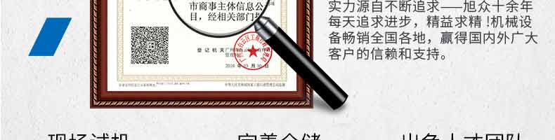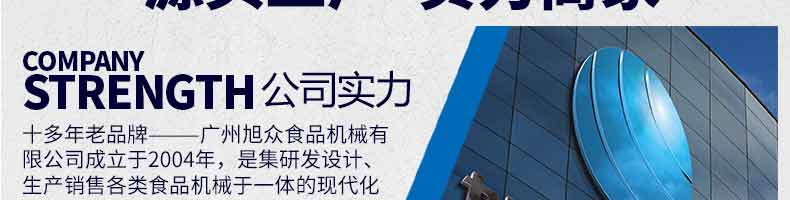 廣州旭眾食品機(jī)械有限公司是一家集科研開發(fā),生產(chǎn)設(shè)計(jì),營銷服務(wù)為一體的現(xiàn)代化生產(chǎn)企業(yè)。現(xiàn)代化生產(chǎn)車間,精湛制造技術(shù),所產(chǎn)機(jī)械歷經(jīng)市場重重考驗(yàn),不斷贏得海內(nèi)外客戶的贊譽(yù)。