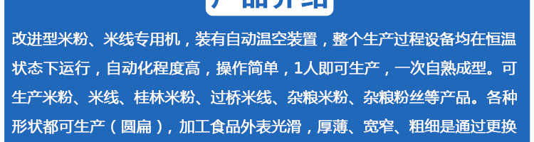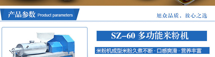SZ-60多功能米粉機(jī),生產(chǎn)多樣性可生產(chǎn)米粉、米線(xiàn)、粉絲、粉條、、年糕、玉米面條、各種雜糧粉絲、各種面條、雜糧面條、彩色面條以及以紅薯、玉米、大豆、蠶豆等制成淀粉為原料的等多種食品而且每種食品厚薄、粗細(xì)等規(guī)格可根據(jù)需要任意調(diào)整。