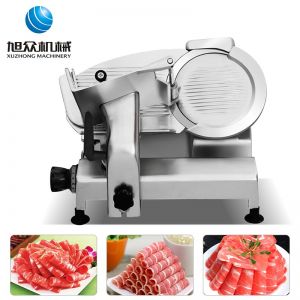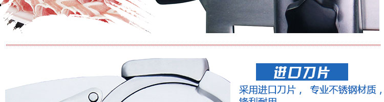 臺式半自動切片機(jī),適合切無骨肉類和其他類似榨菜帶有彈性的食物,把原材料肉切成肉片,并可自動成卷狀??汕信H馄⒀蛉馄?/p>
