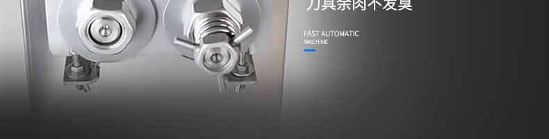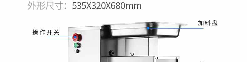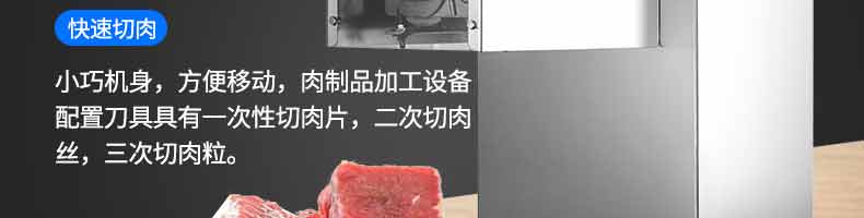 XZ-QX320-切肉機(jī),小型切肉機(jī)是一款主要對肉類進(jìn)行加工的設(shè)備,配置單層刀具一次性切肉片,二次切肉絲,再切成料。刀具采取外置懸臂式設(shè)計(jì),拆洗方便,衛(wèi)生更有保障;配置多種刀具,可加工不同厚度的肉片,實(shí)現(xiàn)一機(jī)多用;機(jī)內(nèi)裝有安全保護(hù)開頭,刀具外露時,機(jī)器自鎖不能啟動,以保安全;卸下的刀具,不用清洗直接放置在6攝氏度以下的冰箱里,刀具余肉不發(fā)臭。刀片用特殊不銹鋼材料制造,經(jīng)久耐用。