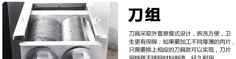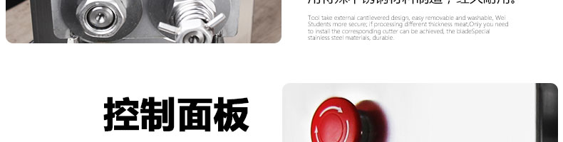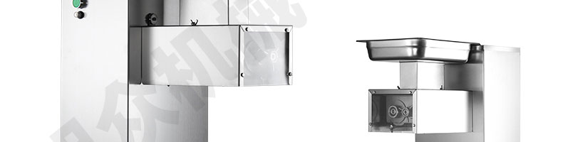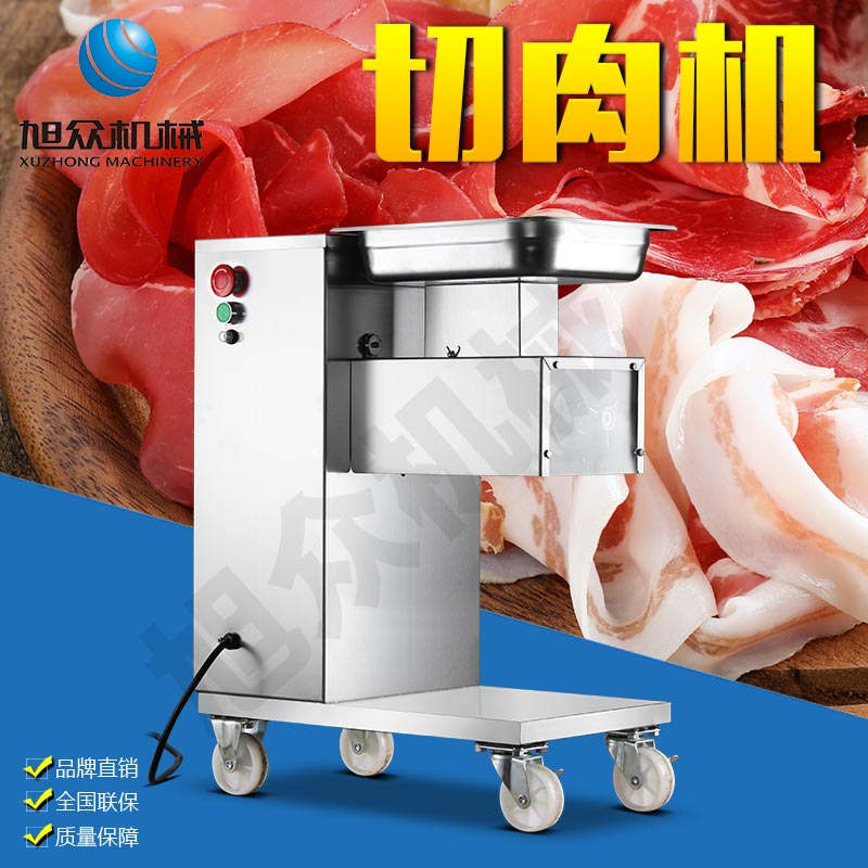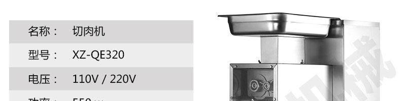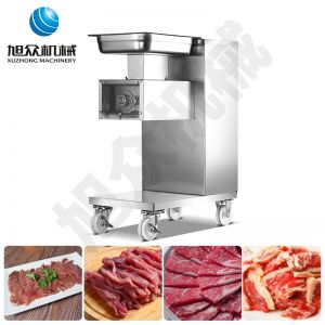 XZ-QE切肉機(jī),是一款可方便移動(dòng)的肉類(lèi)加工設(shè)備,配置單層刀具一次性切肉片,二次切肉絲,再切成粒。底座設(shè)置有滑輪,移動(dòng)靈活,輕松便捷;刀具采取外置懸臂式設(shè)計(jì),拆洗方便,衛(wèi)生更有保障;配置多種刀具,可加工不同厚度的肉片,實(shí)現(xiàn)一機(jī)多用;機(jī)內(nèi)裝有安全保護(hù)開(kāi)頭,刀具外露時(shí),機(jī)器自鎖不能啟動(dòng),以保安全;刀片用特殊不銹鋼材料制造,經(jīng)久耐用;卸下的刀具,不用清洗直接放置在6攝氏度以下的冰箱里,刀具余肉不發(fā)臭。