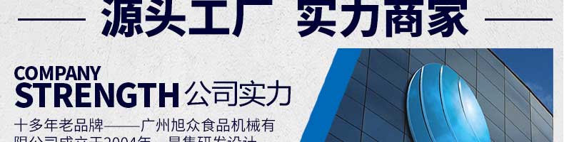 廣州旭眾食品機(jī)械有限公司是一家集科研開(kāi)發(fā),生產(chǎn)設(shè)計(jì),營(yíng)銷服務(wù)為一體的現(xiàn)代化生產(chǎn)企業(yè)?,F(xiàn)代化生產(chǎn)車間,精湛制造技術(shù),所產(chǎn)機(jī)械歷經(jīng)市場(chǎng)重重考驗(yàn),不斷贏得海內(nèi)外客戶的贊譽(yù)。
