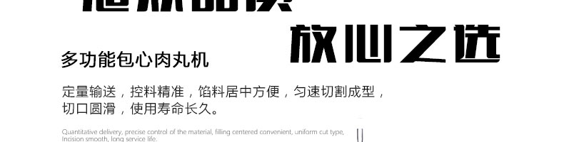 SZ-602包心肉丸機(jī),可生產(chǎn)包心魚(yú)丸、包心豬肉丸、撒尿牛肉丸、爆汁小魚(yú)丸等多種球形醬湯類(lèi)包餡產(chǎn)品。操控性強(qiáng)、穩(wěn)定性高、出品率穩(wěn)定;可抽皮增餡,做到皮薄餡多。
