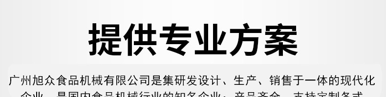 廣州旭眾食品機(jī)械有限公司是一家集科研開發(fā),生產(chǎn)設(shè)計(jì),營銷服務(wù)為一體的現(xiàn)代化生產(chǎn)企業(yè)。現(xiàn)代化生產(chǎn)車間,精湛制造技術(shù),所產(chǎn)機(jī)械歷經(jīng)市場(chǎng)重重考驗(yàn),不斷贏得海內(nèi)外客戶的贊譽(yù)。