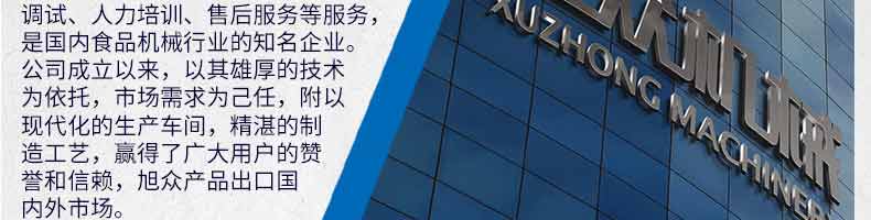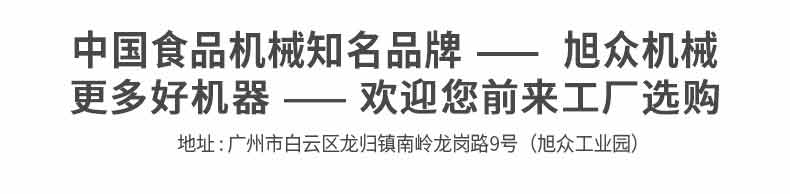 廣州旭眾食品機(jī)械有限公司是一家集科研開發(fā),生產(chǎn)設(shè)計(jì),營(yíng)銷服務(wù)為一體的現(xiàn)代化生產(chǎn)企業(yè)?,F(xiàn)代化生產(chǎn)車間,精湛制造技術(shù),所產(chǎn)機(jī)械歷經(jīng)市場(chǎng)重重考驗(yàn),不斷贏得海內(nèi)外客戶的贊譽(yù)。