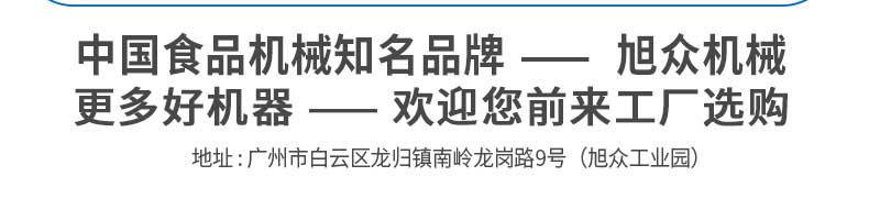 廣州旭眾食品機(jī)械有限公司是一家集科研開發(fā),生產(chǎn)設(shè)計(jì),營(yíng)銷服務(wù)為一體的現(xiàn)代化生產(chǎn)企業(yè)?,F(xiàn)代化生產(chǎn)車間,精湛制造技術(shù),所產(chǎn)機(jī)械歷經(jīng)市場(chǎng)重重考驗(yàn),不斷贏得海內(nèi)外客戶的贊譽(yù)。
