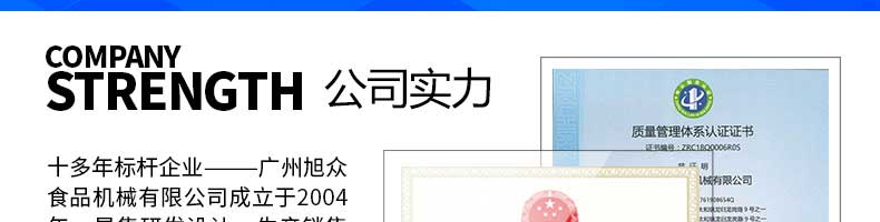 廣州旭眾食品機(jī)械有限公司是一家集科研開發(fā),生產(chǎn)設(shè)計,營銷服務(wù)為一體的現(xiàn)代化生產(chǎn)企業(yè)?,F(xiàn)代化生產(chǎn)車間,精湛制造技術(shù),所產(chǎn)機(jī)械歷經(jīng)市場重重考驗(yàn),不斷贏得海內(nèi)外客戶的贊譽(yù)。