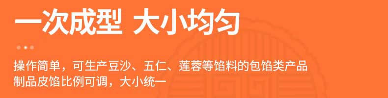 XZ-68月餅包餡機,一次成型大小均勻,操作簡單,可生產(chǎn)豆沙、五仁、蓮蓉等餡料的包餡類產(chǎn)品制品皮餡比例可調(diào),大小統(tǒng)