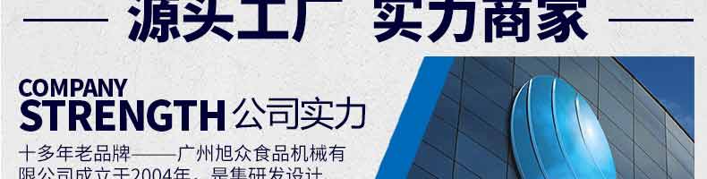 廣州旭眾食品機(jī)械有限公司是一家集科研開發(fā),生產(chǎn)設(shè)計(jì),營(yíng)銷服務(wù)為一體的現(xiàn)代化生產(chǎn)企業(yè)?,F(xiàn)代化生產(chǎn)車間,精湛制造技術(shù),所產(chǎn)機(jī)械歷經(jīng)市場(chǎng)重重考驗(yàn),不斷贏得海內(nèi)外客戶的贊譽(yù)。