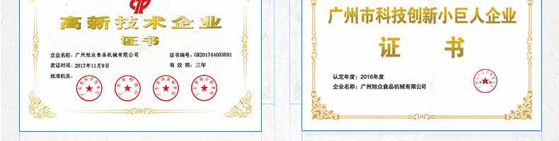 廣州旭眾食品機(jī)械有限公司是一家集科研開發(fā),生產(chǎn)設(shè)計(jì),營銷服務(wù)為一體的現(xiàn)代化生產(chǎn)企業(yè)?,F(xiàn)代化生產(chǎn)車間,精湛制造技術(shù),所產(chǎn)機(jī)械歷經(jīng)市場重重考驗(yàn),不斷贏得海內(nèi)外客戶的贊譽(yù)。