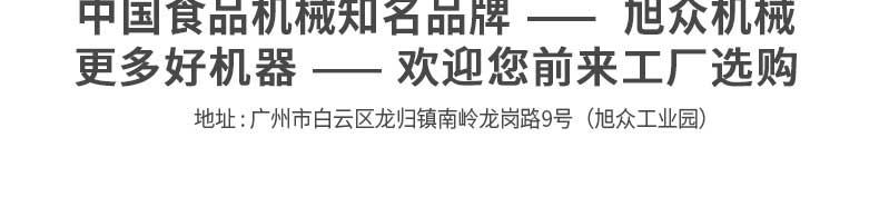 廣州旭眾食品機械有限公司是一家集科研開發(fā),生產(chǎn)設(shè)計,營銷服務(wù)為一體的現(xiàn)代化生產(chǎn)企業(yè)。現(xiàn)代化生產(chǎn)車間,精湛制造技術(shù),所產(chǎn)機械歷經(jīng)市場重重考驗,不斷贏得海內(nèi)外客戶的贊譽。
