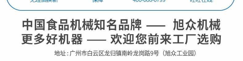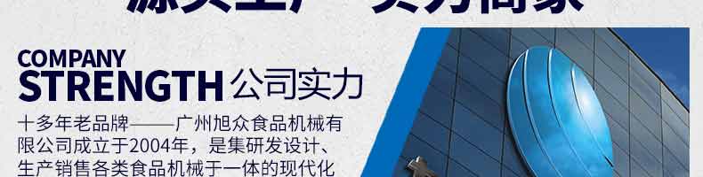 廣州旭眾食品機械有限公司是一家集科研開發(fā),生產設計,營銷服務為一體的現(xiàn)代化生產企業(yè)。現(xiàn)代化生產車間,精湛制造技術,所產機械歷經市場重重考驗,不斷贏得海內外客戶的贊譽。